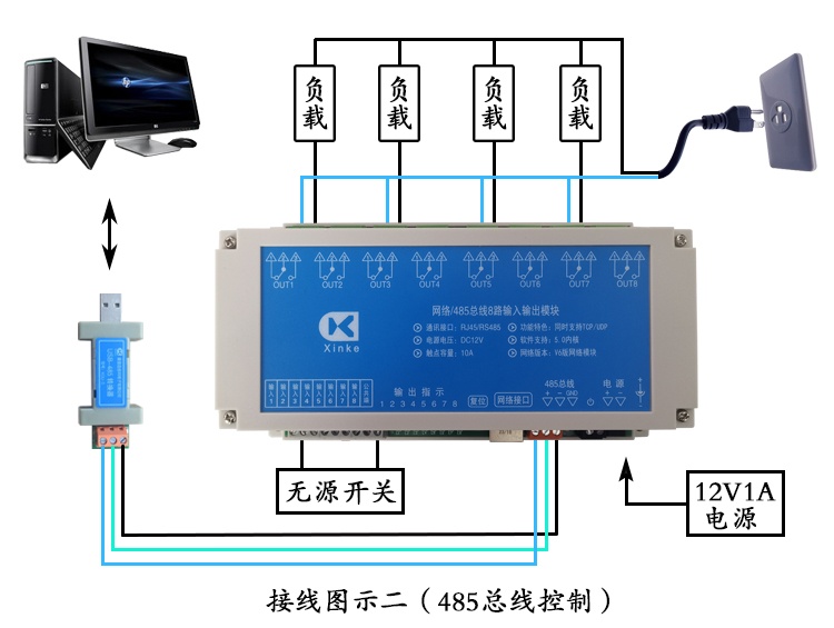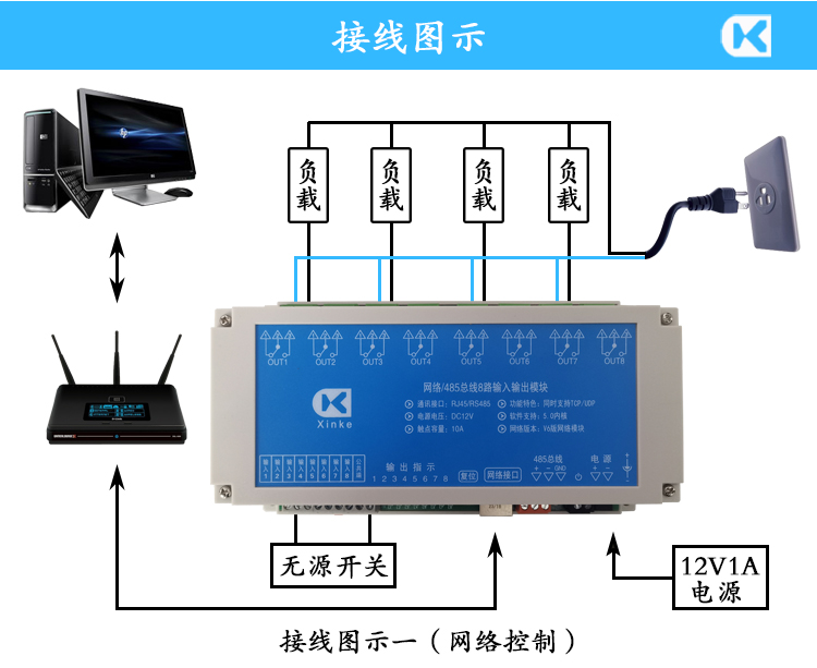 網絡TCP/UDP控制8入8出10A繼電器V6版5.0內核智能編程RS485局域網